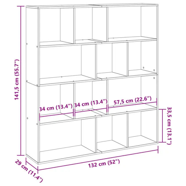 vidaXL Knjižna omara siva sonoma 132x29x141,5 cm inženirski les