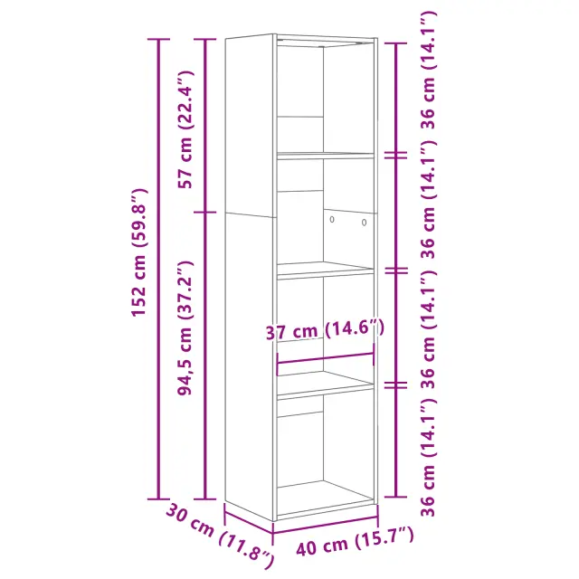 • Materiali: Ta knjižna omara je narejena iz inženirskega lesa, kar pomeni, da je trpežna in vizualno privlačna. Inženirski les poskrbi za trajnost in daje sodoben, čist videz, ki se poda različnim stilom notranjosti. Zelo robustna izbira, ki drži težo, brez da bi žrtvovala slog.