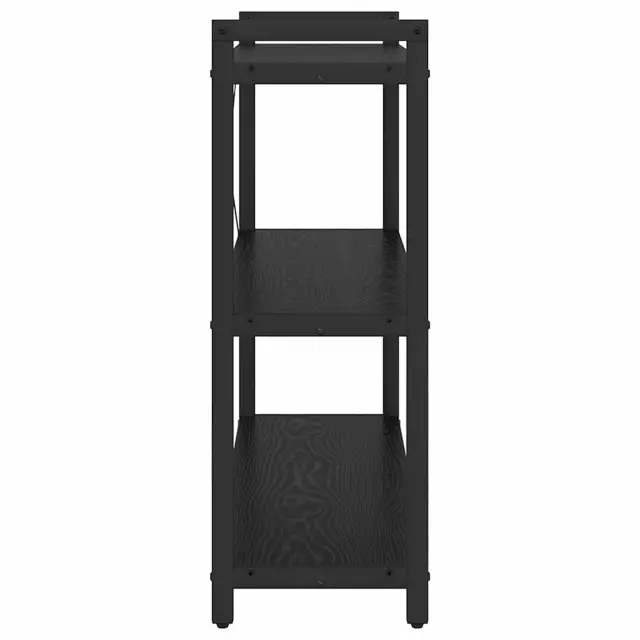 • Črno jekleno ogrodje: Ogrodje je izdelano iz trdnega jekla v elegantni črni barvi, kar zagotavlja moč in privlačen videz. Njegova robustna konstrukcija podpira težo številnih predmetov in nudi stabilno ter varno postavitev.