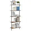 • Podpora iz jeklenega okvirja Močan jeklen okvir nudi zanesljivo podporo in stabilnost, kar pomeni, da knjižna polica ostaja trdna in varna. Jeklena konstrukcija se upira deformacijam in zagotavlja varno rešitev za shranjevanje. Njena črna barva dodaja pridih sofisticiranosti, čiste linije pa se ujemajo z modernim minimalističnim videzom.