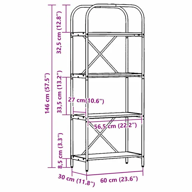 vidaXL Knjižna polica Dimljeni oreh 60 x 30 x 146 cm Konstruiran les