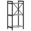 • Črno jekleno ogrodje: Ogrodje je izdelano iz trdnega jekla v elegantni črni barvi, kar zagotavlja moč in privlačen videz. Njegova robustna konstrukcija podpira težo številnih predmetov in nudi stabilno ter varno postavitev.