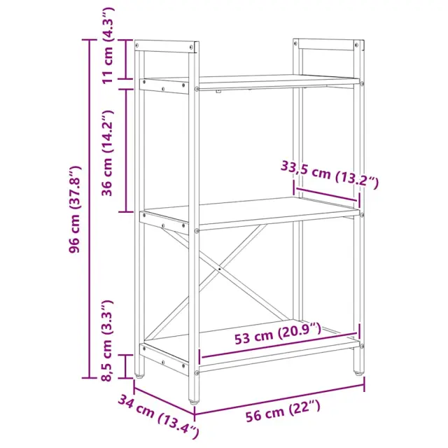 • Priporočena raba: Idealna za domače pisarne, študije ali dnevne sobe, knjižna polica služi kot zanesljiv prostor za shranjevanje knjig, dekorativnih predmetov in raznih drobnarij. Njena industrijska privlačnost se lepo ujema z različnimi slogi, še posebej modernimi in tradicionalnimi.
