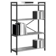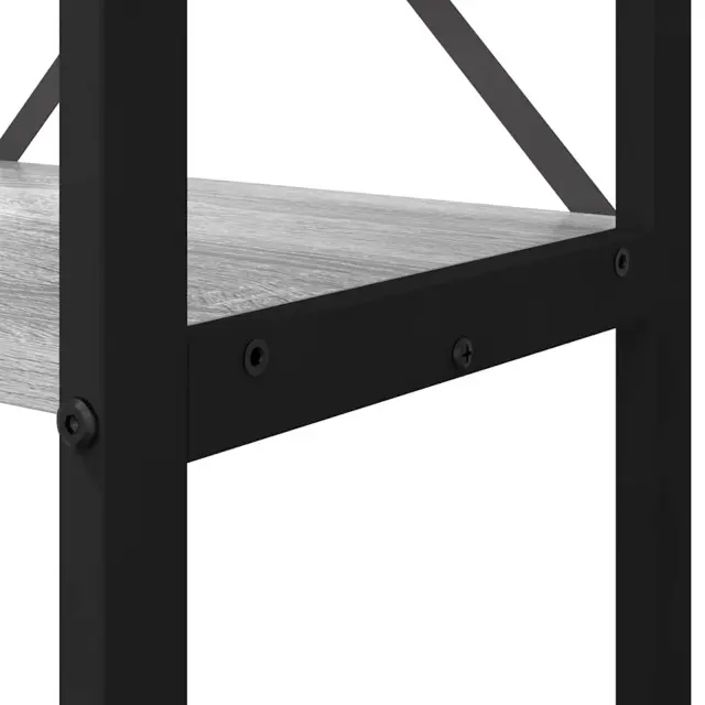 • Črno jekleno ogrodje: Ogrodje je izdelano iz trdnega jekla v elegantni črni barvi, kar zagotavlja moč in privlačen videz. Njegova robustna konstrukcija podpira težo številnih predmetov in nudi stabilno ter varno postavitev.