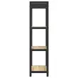• Črno jekleno ogrodje: Ogrodje je izdelano iz trdnega jekla v elegantni črni barvi, kar zagotavlja moč in privlačen videz. Njegova robustna konstrukcija podpira težo številnih predmetov in nudi stabilno ter varno postavitev.