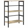 Ta industrijska knjižna polica je vrhunski primer modernega industrijskega sloga, ki ga zaznamujejo elegantne in drzne linije ter surov material. Odlično se poda domačim pisarnam, študijem ali dnevnim sobam. Ima trdno strukturo iz inženirskega lesa in jekla, ki združuje funkcionalnost in sodoben videz. Široke police nudijo dovolj prostora za shranjevanje knjig, dekoracij in drugih nujnosti, kar združuje stil in uporabnost v različnih urbanih in rustikalnih postavitvah.