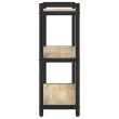 • Črno jekleno ogrodje: Ogrodje je izdelano iz trdnega jekla v elegantni črni barvi, kar zagotavlja moč in privlačen videz. Njegova robustna konstrukcija podpira težo številnih predmetov in nudi stabilno ter varno postavitev.