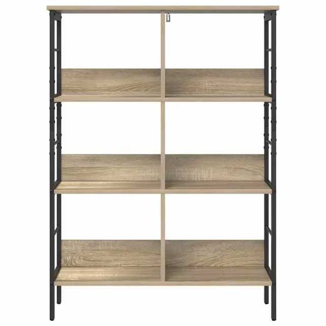 • Funkcionalne komponente: S prostornimi policami ta knjižna polica ponuja enostavno rešitev za shranjevanje. Police iz inženirskega lesa, podprte z vzdržljivim jeklenim okvirom, zagotavljajo stabilnost in poliran videz ter so odlične za organizirano shranjevanje.