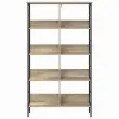 • Funkcionalne komponente: S prostornimi policami ta knjižna polica ponuja enostavno rešitev za shranjevanje. Police iz inženirskega lesa, podprte z vzdržljivim jeklenim okvirom, zagotavljajo stabilnost in poliran videz ter so odlične za organizirano shranjevanje.