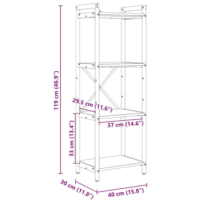 • Idealna za notranjo uporabo: Zasnovana za notranje prostore, ta knjižna polica se brez težav prilega študijem, dnevnim sobam ali kamorkoli, kjer potrebujete stilno organizacijo. Njena industrijska zasnova se lepo ujema s sodobnim pohištvom in doda kanček urbane privlačnosti.