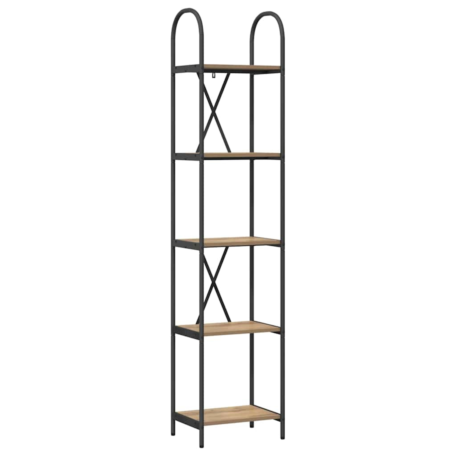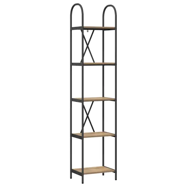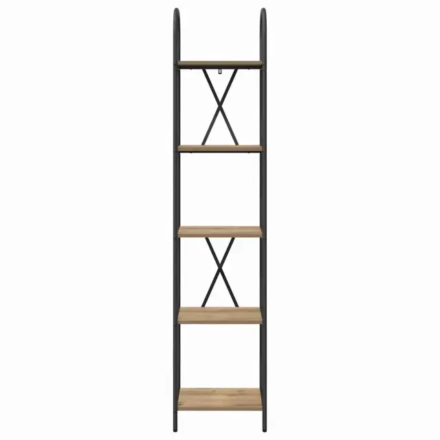 Ta moderna pravokotna knjižna polica je odlična samostoječa enota za shranjevanje, ki združuje stil in organizacijo, perfektna za razstavljanje vaših knjig, dekorativnih predmetov in še več. S čistimi linijami in minimalističnim dizajnom se brez problema prilega v vsak sodoben dom. Inženirske lesene police in črn jeklen okvir ji dajejo eleganten izgled, ki postane osrednja točka vašega bivalnega prostora. Ne glede na to, ali jo postavite v dnevno sobo ali pisarno, ta knjižna polica dvigne ambient s svojo preprosto eleganco.