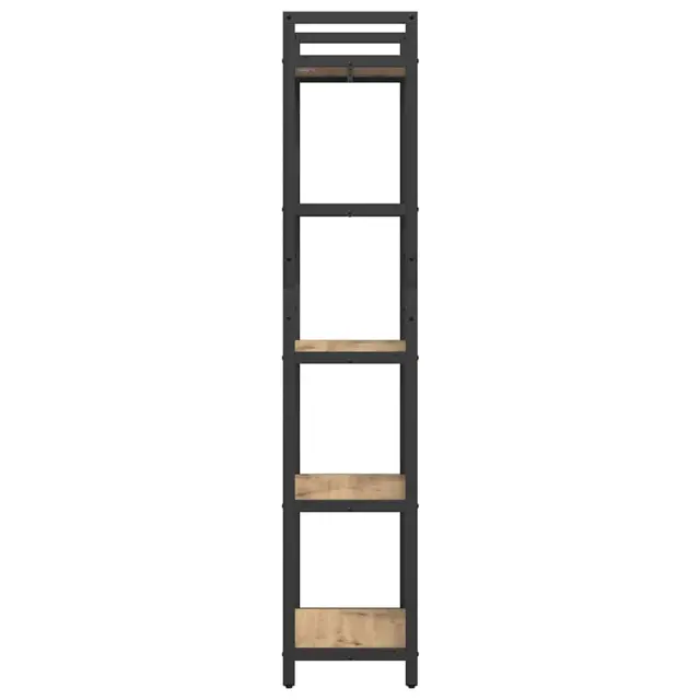 • Vključene komponente: Knjižna polica je zasnovana z različnimi policami za prilagodljivost in stabilnost. S trdnim jeklenim okvirjem, kvadratne noge omogočajo, da polica ostane stabilna tudi na neravnih površinah. Samostoječa zasnova olajša premikanje ali ponovno postavitev po potrebi.