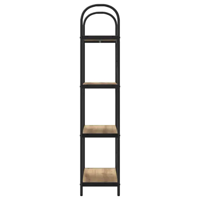 Ta moderna pravokotna knjižna polica je odlična samostoječa enota za shranjevanje, ki združuje stil in organizacijo, perfektna za razstavljanje vaših knjig, dekorativnih predmetov in še več. S čistimi linijami in minimalističnim dizajnom se brez problema prilega v vsak sodoben dom. Inženirske lesene police in črn jeklen okvir ji dajejo eleganten izgled, ki postane osrednja točka vašega bivalnega prostora. Ne glede na to, ali jo postavite v dnevno sobo ali pisarno, ta knjižna polica dvigne ambient s svojo preprosto eleganco.