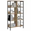 • Funkcionalne komponente: S prostornimi policami ta knjižna polica ponuja enostavno rešitev za shranjevanje. Police iz inženirskega lesa, podprte z vzdržljivim jeklenim okvirom, zagotavljajo stabilnost in poliran videz ter so odlične za organizirano shranjevanje.