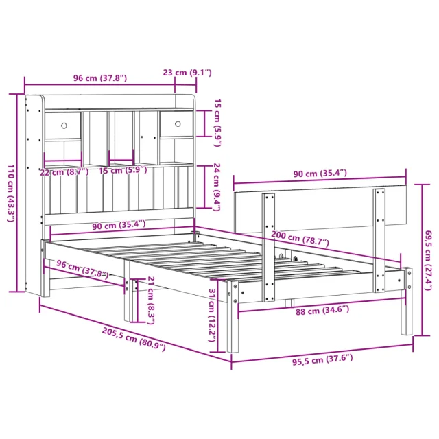 • Velikost primerne vzmetnice: 90 x 200 cm (Š x D) (vzmetnica ni priložena)