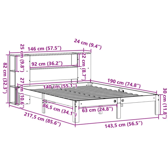 vidaXL Knjižna postelja brez ležišča bela 140x190 cm trdna borovina