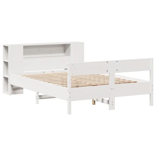 vidaXL Knjižna postelja brez ležišča bela 140x190 cm trdna borovina