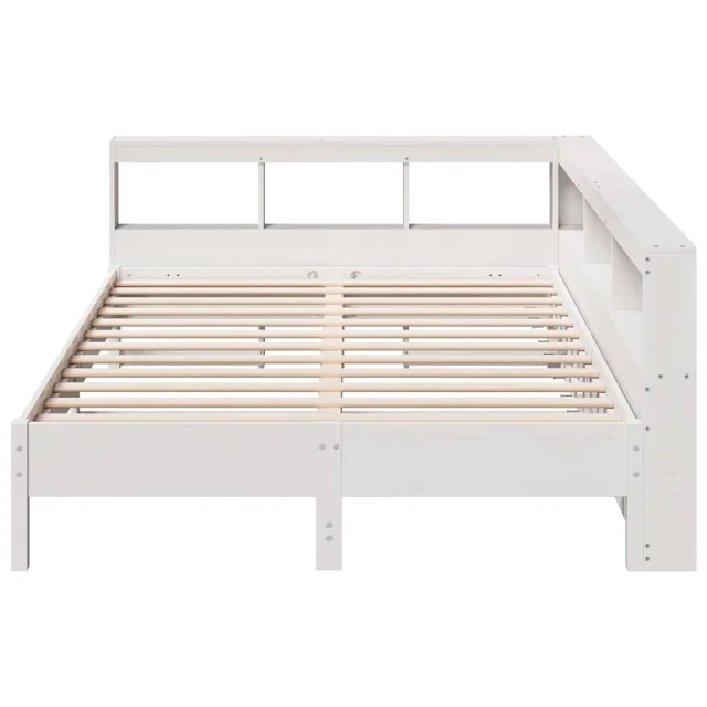 vidaXL Knjižna postelja brez ležišča bela 140x190 cm trdna borovina
