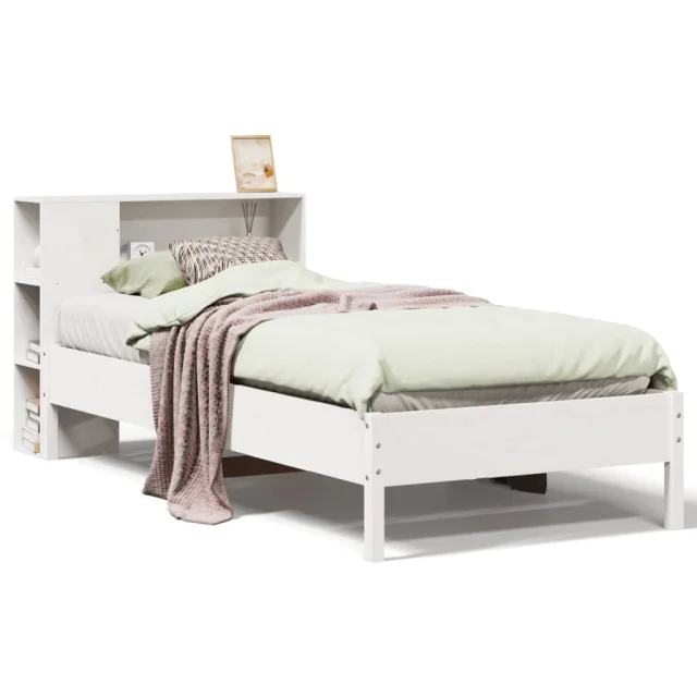 vidaXL Knjižna postelja brez ležišča bela 90x190cm trdna borovina