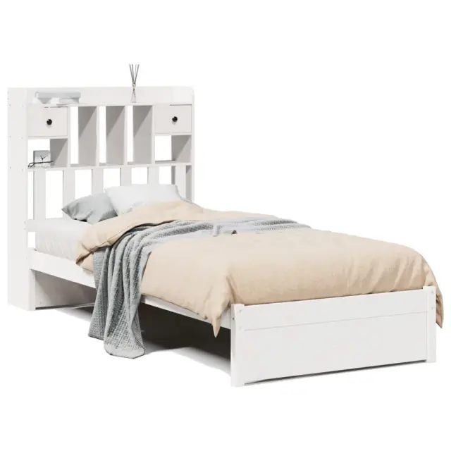 vidaXL Knjižna postelja brez ležišča bela 90x200 cm trdna borovina