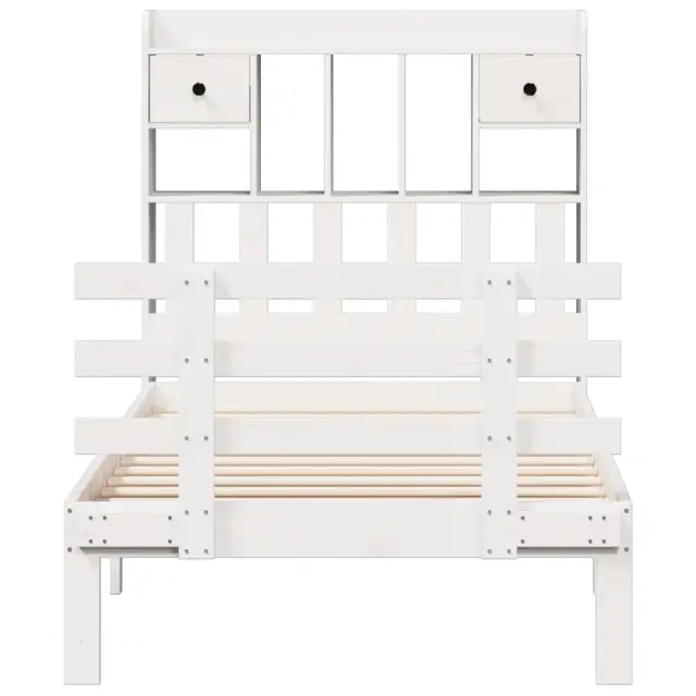 vidaXL Knjižna postelja brez ležišča bela 90x200 cm trdna borovina