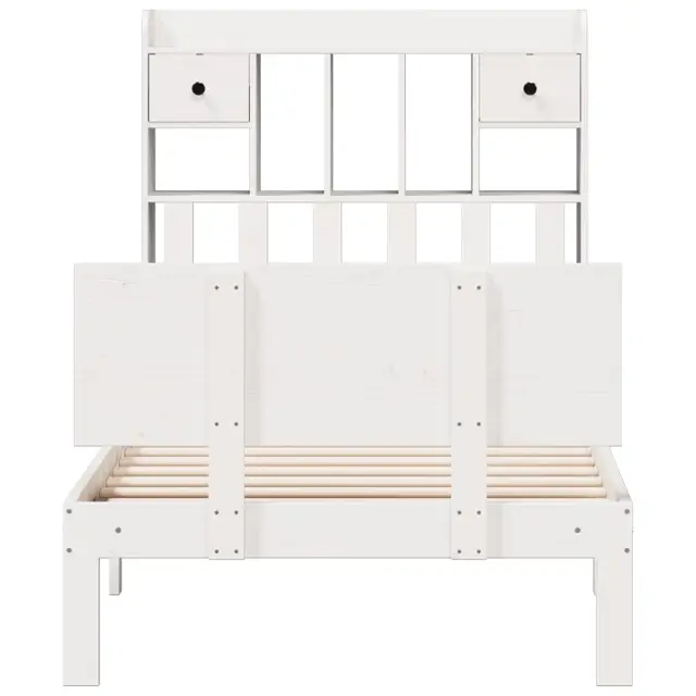 vidaXL Knjižna postelja brez ležišča bela 90x200 cm trdna borovina