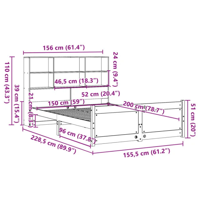 vidaXL Knjižna postelja brez vzmetnice 150x200 cm trdna borovina