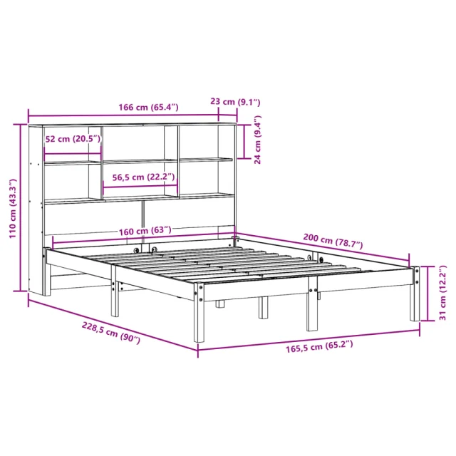 vidaXL Knjižna postelja brez vzmetnice 160x200 cm trdna borovina