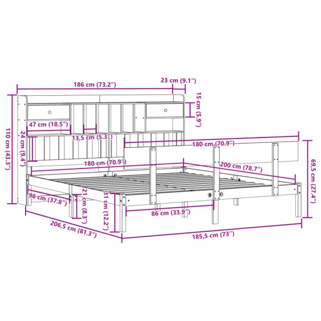• Dimenzije: 186 x 23 x 110 cm (Š x G x V)