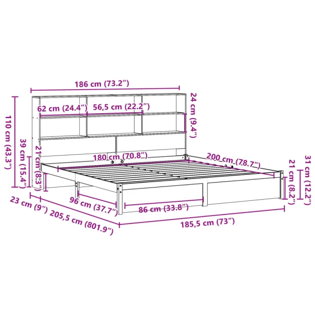 vidaXL Knjižna postelja brez vzmetnice 180x200 cm trdna borovina