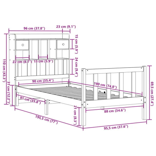 • Velikost primerne vzmetnice: 90 x 190 cm (Š x D) (vzmetnica ni priložena)