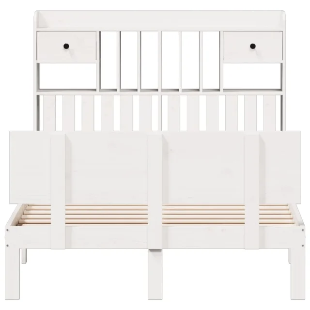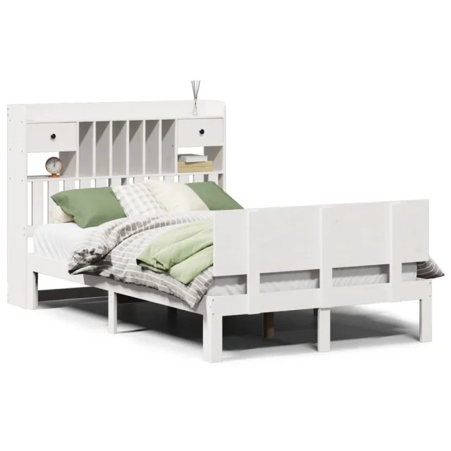 vidaXL Knjižna postelja brez vzmetnice bela 135x190 cm trdna borovina