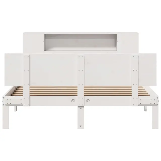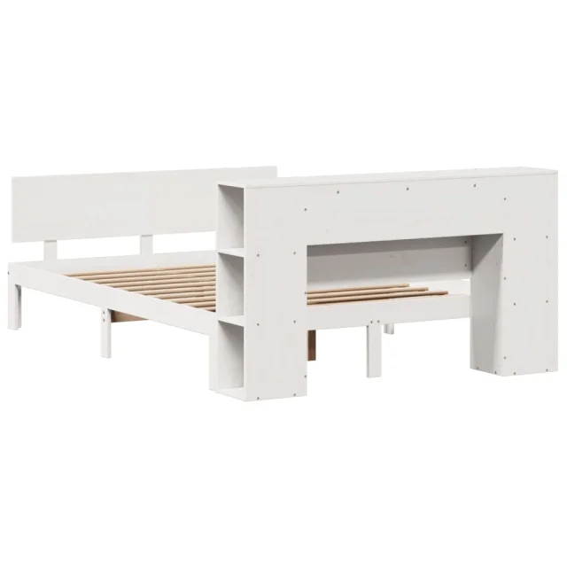 vidaXL Knjižna postelja brez vzmetnice bela 135x190 cm trdna borovina