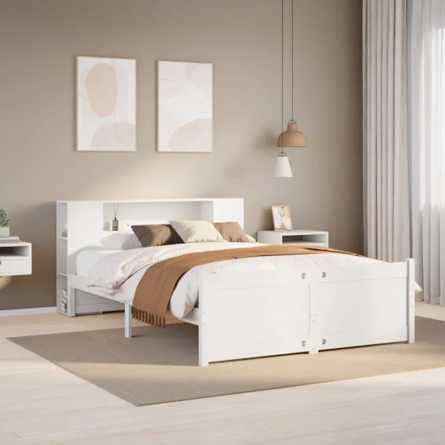 vidaXL Knjižna postelja brez vzmetnice bela 140x200 cm trdna borovina