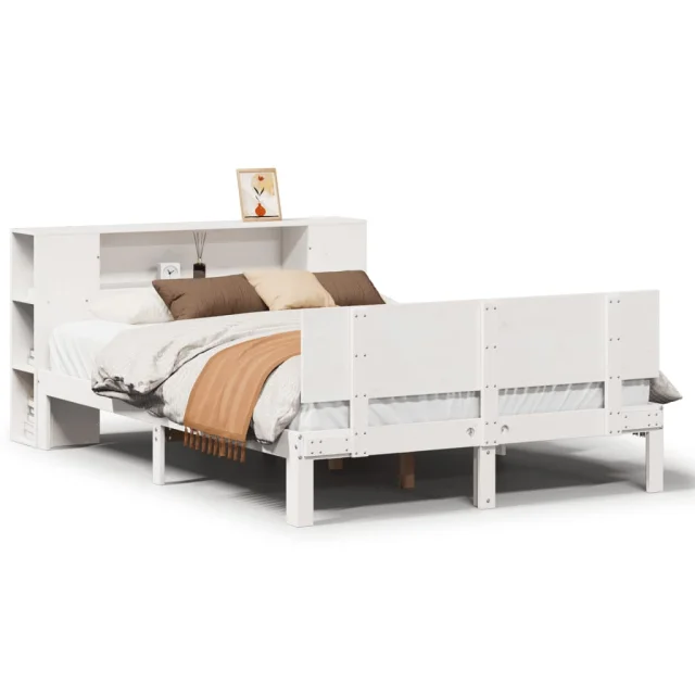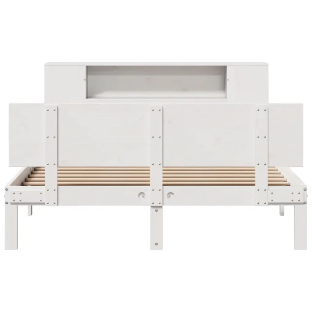 vidaXL Knjižna postelja brez vzmetnice bela 140x200 cm trdna borovina