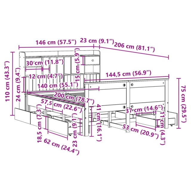 • Veliko prostora za shranjevanje: To posteljno vzglavje s knjižno polico ponuja veliko prostora za shranjevanje knjig, okrasnih predmetov ali osebnih stvari, da bodo na dosegu roke, kar zmanjšuje nered v spalnici.