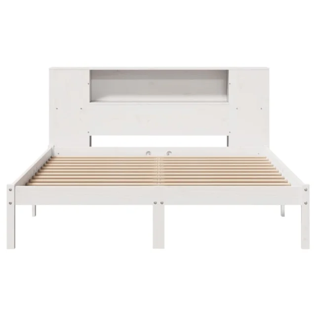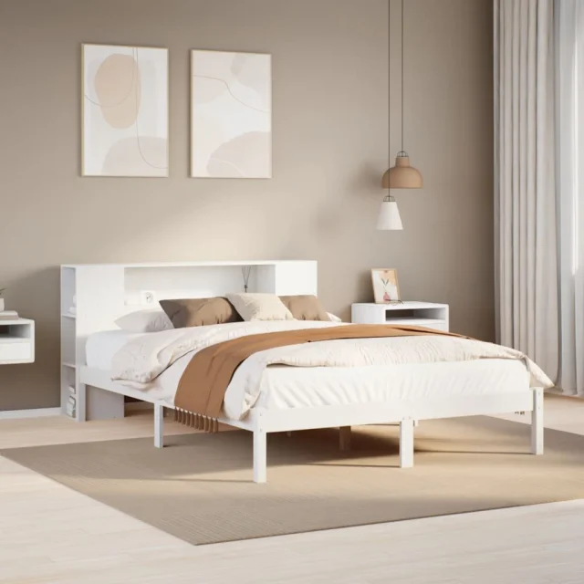 vidaXL Knjižna postelja brez vzmetnice bela 150x200 cm trdna borovina