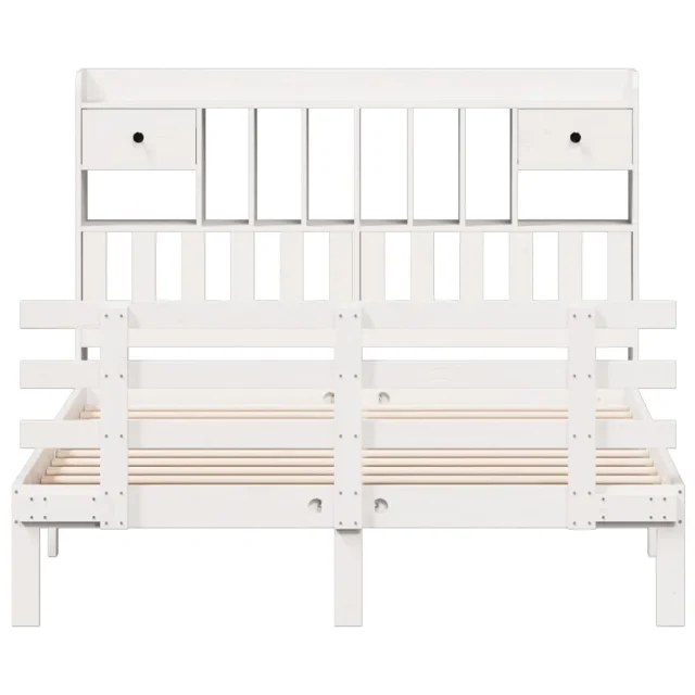vidaXL Knjižna postelja brez vzmetnice bela 150x200 cm trdna borovina