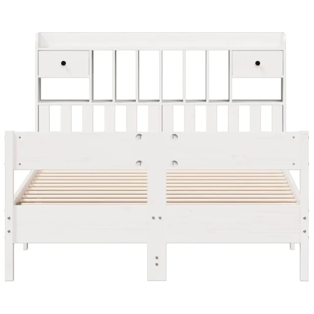 vidaXL Knjižna postelja brez vzmetnice bela 150x200 cm trdna borovina