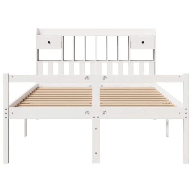 vidaXL Knjižna postelja brez vzmetnice bela 150x200 cm trdna borovina