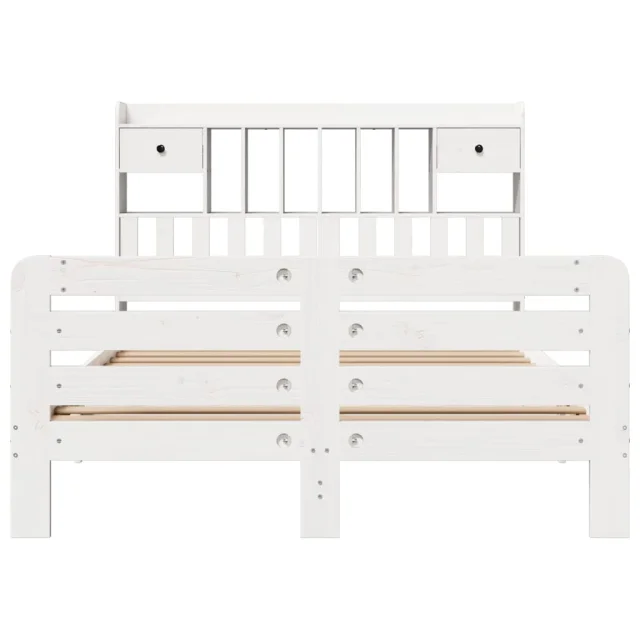 vidaXL Knjižna postelja brez vzmetnice bela 150x200 cm trdna borovina