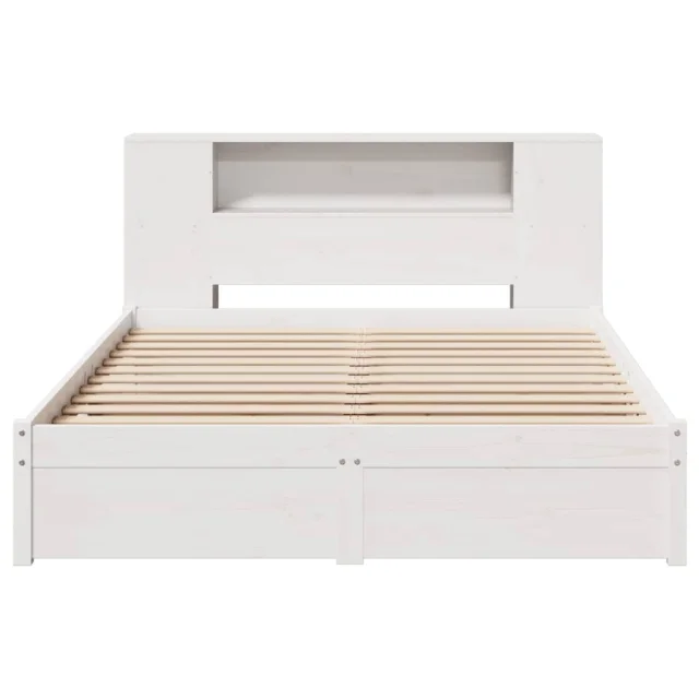 vidaXL Knjižna postelja brez vzmetnice bela 160x200 cm trdna borovina