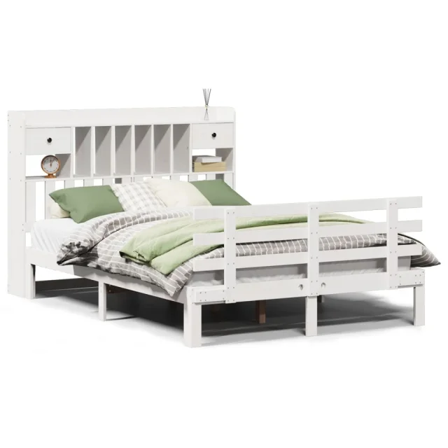 vidaXL Knjižna postelja brez vzmetnice bela 160x200 cm trdna borovina