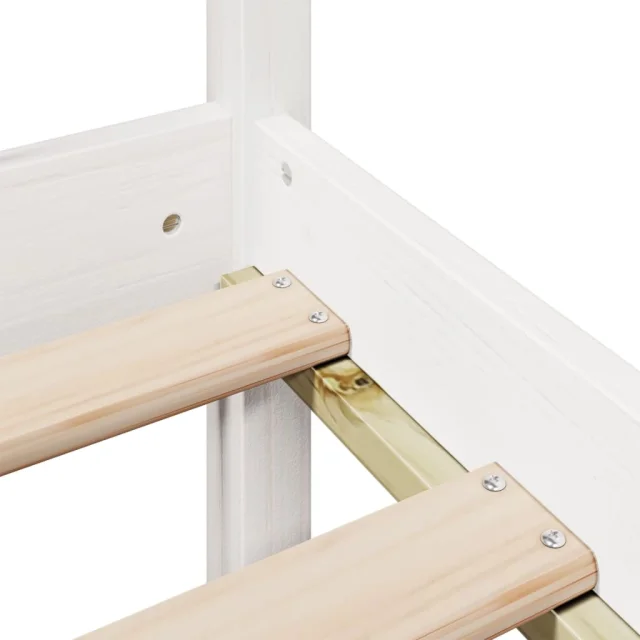 • Podnožje z letvami za optimalno podporo: Za podporo in zračnost ležišča je posteljni okvir opremljen z letvenim dnom.