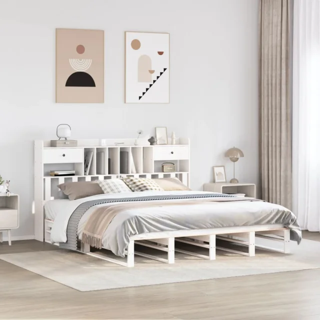 vidaXL Knjižna postelja brez vzmetnice bela 180x200 cm trdna borovina