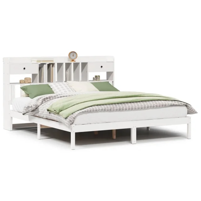 vidaXL Knjižna postelja brez vzmetnice bela 180x200 cm trdna borovina