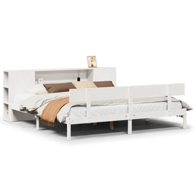 vidaXL Knjižna postelja brez vzmetnice bela 200x200 cm trdna borovina