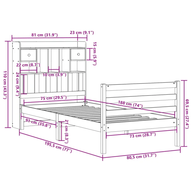 • Velikost primerne vzmetnice: 75 x 190 cm (Š x D) (vzmetnica ni priložena)