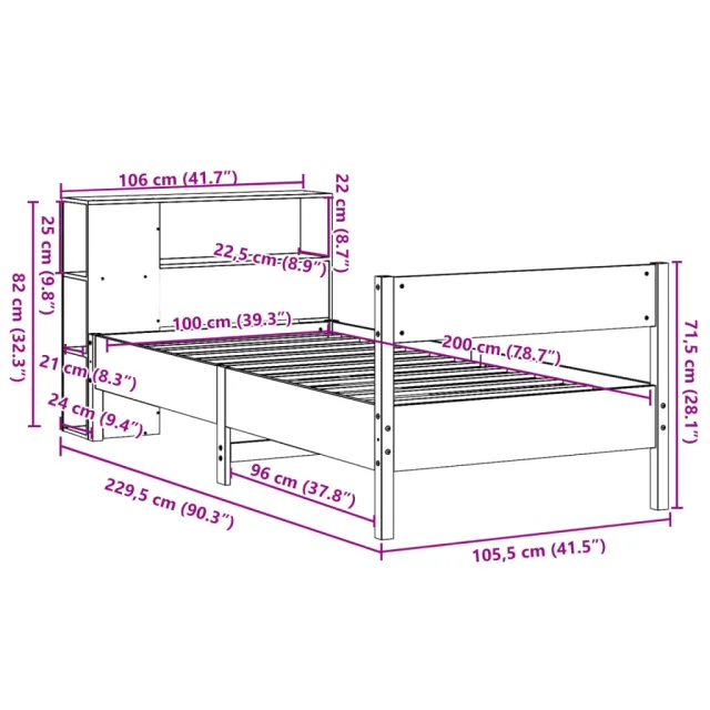 vidaXL Knjižna postelja brez vzmetnice vošč. rjava 100x200 cm borovina