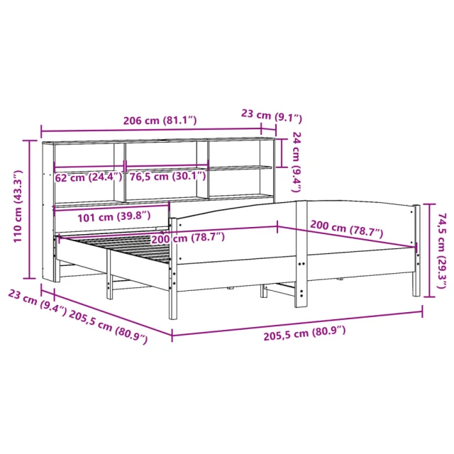 • Dimenzije: 206 x 23 x 110 cm (Š x G x V)